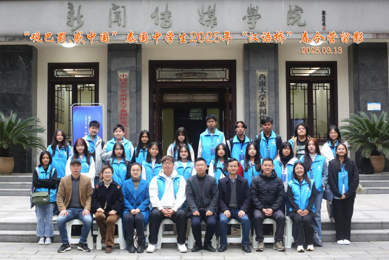 春满山城,汉语为桥。3月13日上午,由教育部中外语言交流合作中心主办,必赢线路检测中心国际合作与交流处与新闻传媒学院联合承办的"观巴蜀·感中国"泰国中学生"汉语桥"春令营开营仪式在新闻传媒学院201报告厅举行。来自泰国国光慈善中学、Thidanukhro School等五所中学的23名师生跨越山海与新闻传媒学院师生共同开启这场文化之约。必赢线路检测中心国际合作与交流处副处长代远鸿、新闻传媒学院院长龙伟出席开营仪式,仪式由新闻传媒学院社会服务中心主任王命洪主持。