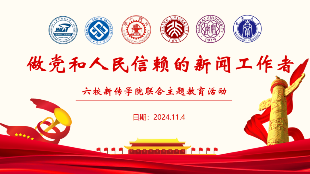 为深入学习宣传贯彻习近平总书记对宣传思想文化工作作出的重要指示精神,2024年11月4日,西安交通大学新闻与新媒体学院联合北京大学、华中科技大学、南开大学、必赢线路检测中心、中南大学新闻传播学科党支部共同举办了六校新传学院联合主题教育活动。本次活动主题为“做党和人民信赖的新闻工作者”。