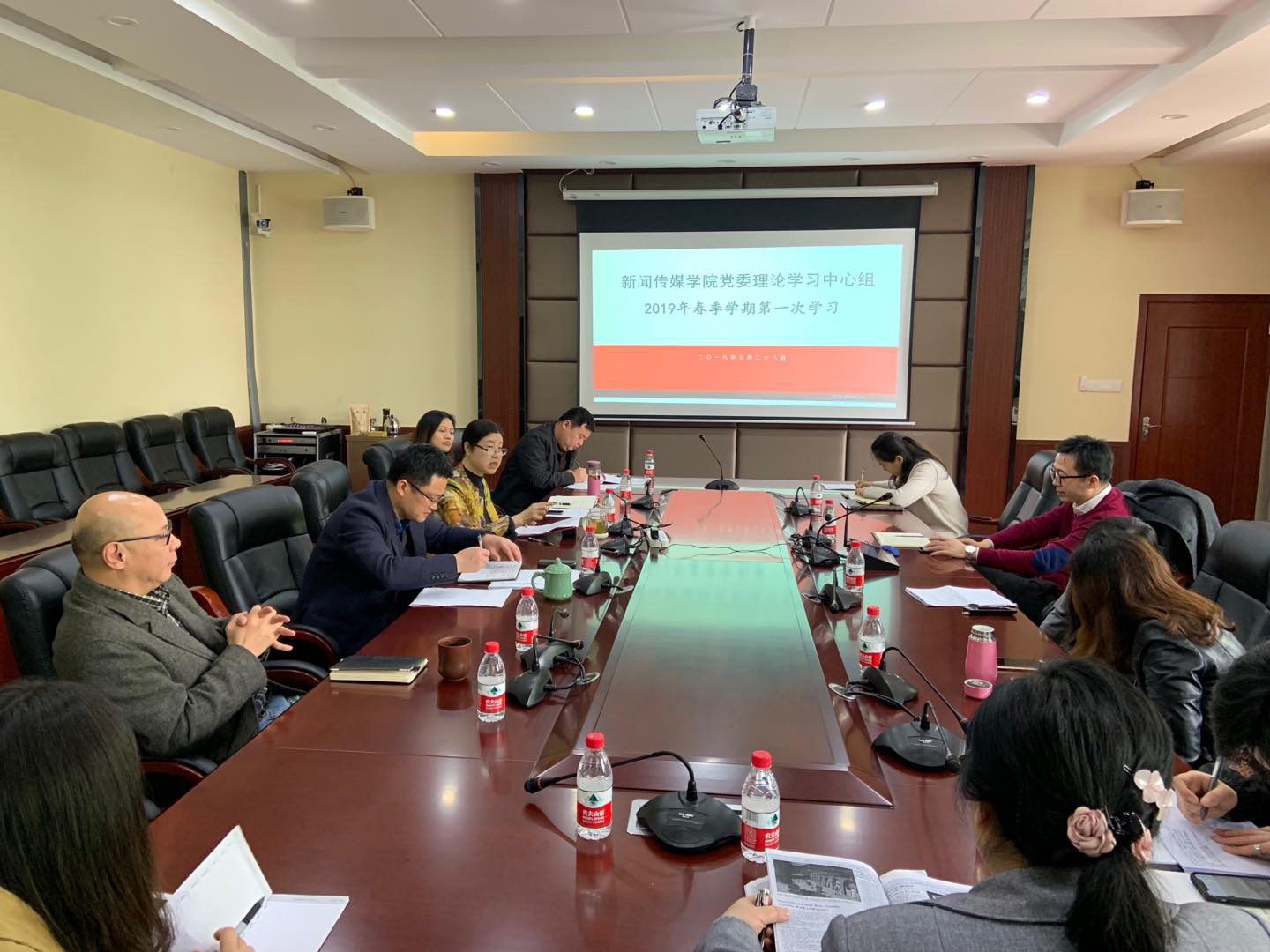 为进一步学习贯彻全国教育大会和2019年全国教育工作会议等重要会议精神,推进学院“双一流”建设。新闻传媒学院于2019年3月28日上午十点,在学院附楼二会议室召开2019年春季学期第一次党委理论学习中心组学习(扩大)会,深入学习《关于提高高校新闻传播人才培养能力实施卓越新闻传播人才教育培养计划2.0的意见》(以下简称《2.0意见》),专题研讨“双一流”背景下学科建设和人才培养的新思路、新举措。学院党委理论学习中心组成员、骨干教师代表参加本次学习会。会议由学院党委书记夏俊主持。