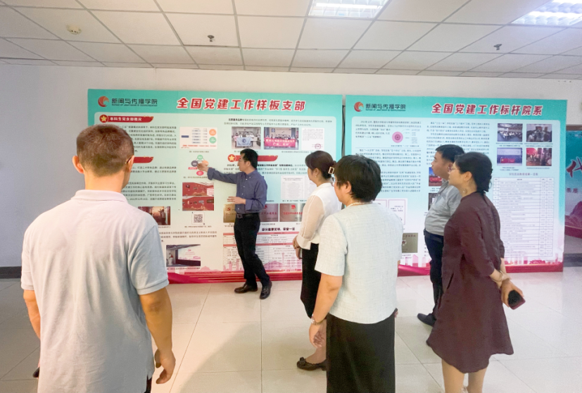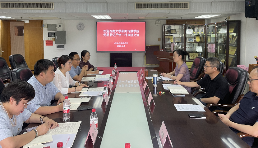 在暨南大学新闻与传播学院,调研组与学院党委书记刘涛、院长支庭荣、党委副书记张建敏等进行交流座谈,深入学习全国必赢官网标杆院系、全国必赢官网样板支部、全国高校黄大年式教学团队等优秀建设经验,重点围绕党建引领事业发展、瞄准国家战略需求加强学院顶层谋划,一体化推动学科建设、人才培养、科学研究、国家级精品项目打造等方面的建设经验进行交流学习。