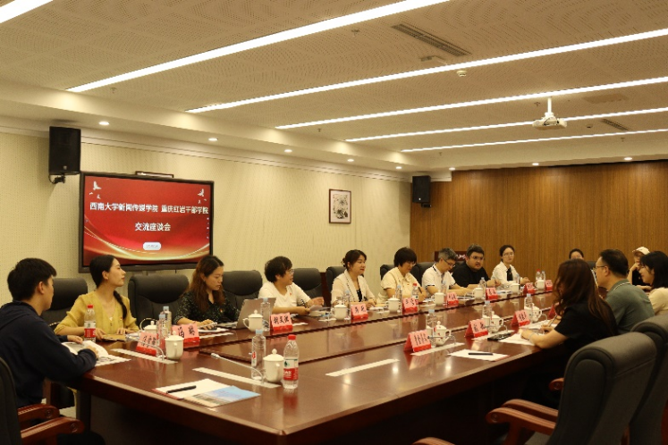 严怡结合新闻传媒学院学科专业特点、人才培养成效,重点介绍了学院在党建与事业发展深度融合引领下课程思政建设、文化品牌建设、红色教育开展、红色文化宣传等工作开展情况及成效成果。严怡谈到,新闻传媒学院坚持将红色教育融入当代大学生思政教育和人才培养,通过筑牢课程主阵地、创新实践教育途径、助力平台品牌建设、长效常态文化沁润等方式推动红色文化在青年中有效传播、入脑入心。同时,也积极发挥学科专业优势,主动开展新时代红色文化创新传播的实践探索,为红色文化传播特别是红岩文化传播贡献青年智慧、新传力量。学院前期已经与红岩革命历史博物馆、红岩联线文化发展管理中心开展了卓有成效的合作探索,希望能以此次调研交流为契机,深化合作交流,发挥双方优势,以小切口推动有效合作探索,共同打造红岩精品“思政大课”,进一步提升红岩文化在青年群体中的传播力、影响力、教育力。