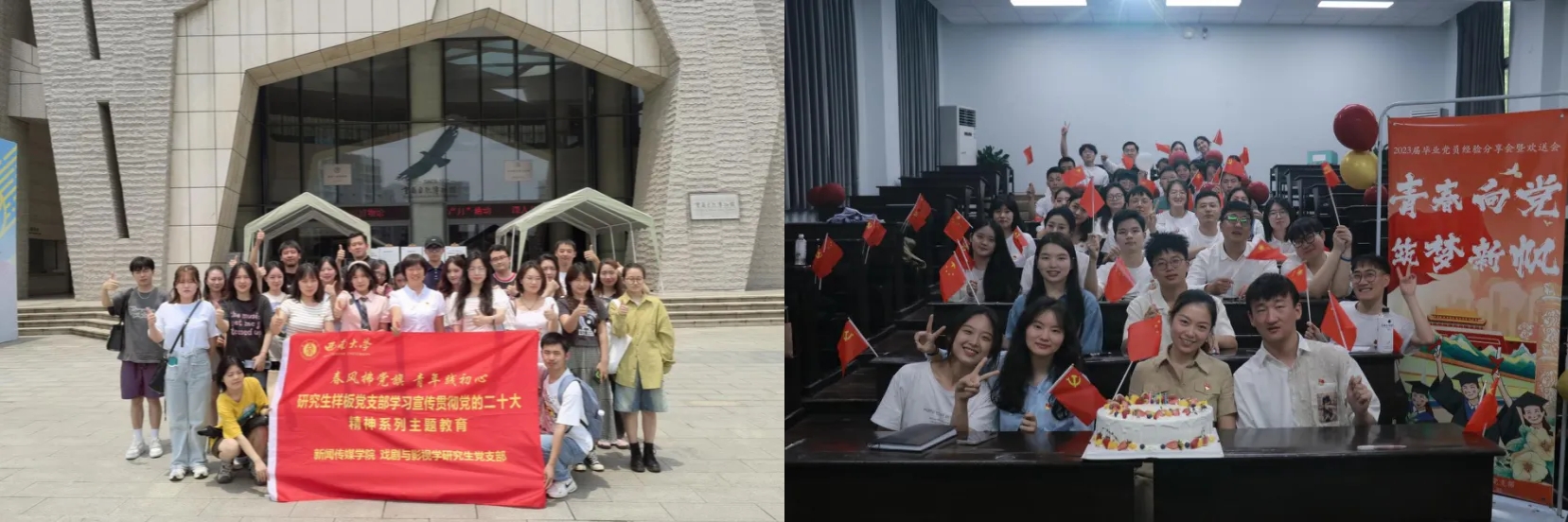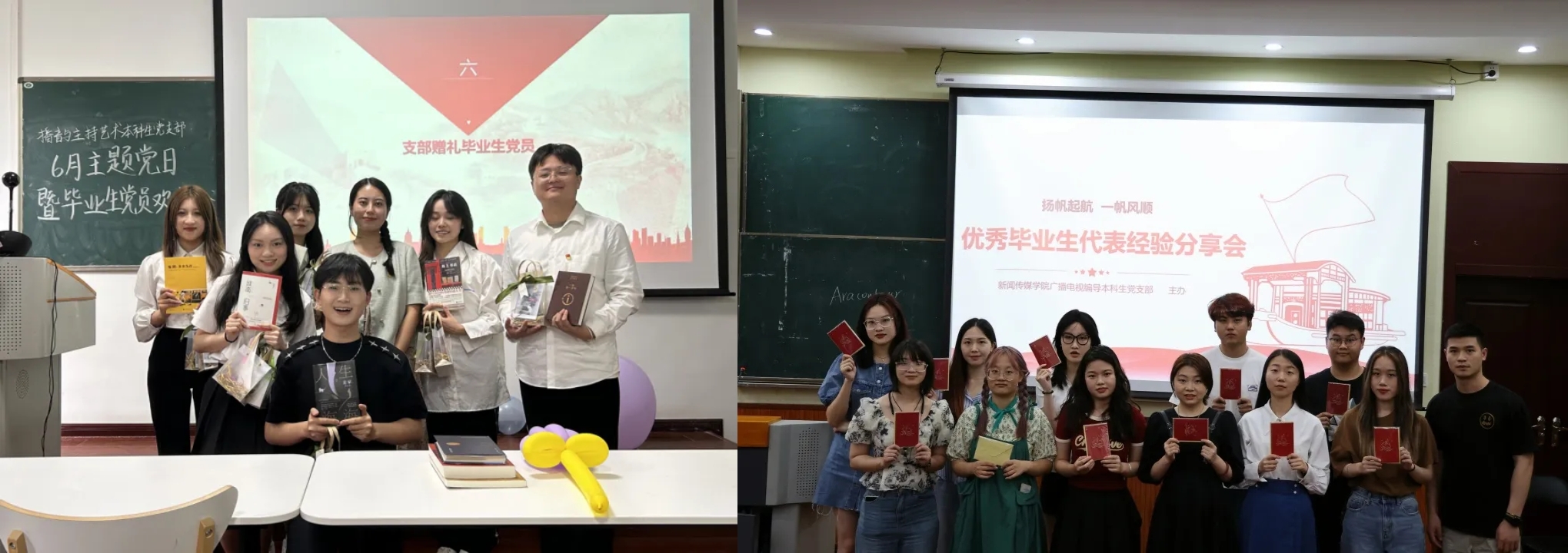 新闻传媒学院各学生党支部也积极响应学院党委号召,纷纷举行丰富多彩的经验交流分享会和毕业生党员欢送仪式。回顾、分享、祝福、续航,与支部共同成长的点滴,在仪式感满满的送别中,更加深刻地镌刻进每位党员心中。