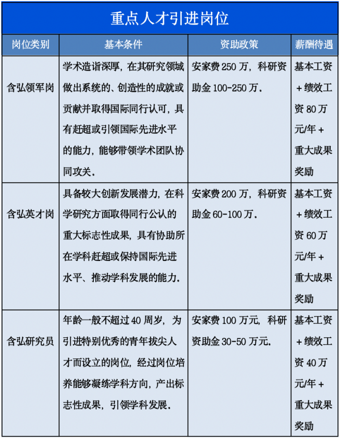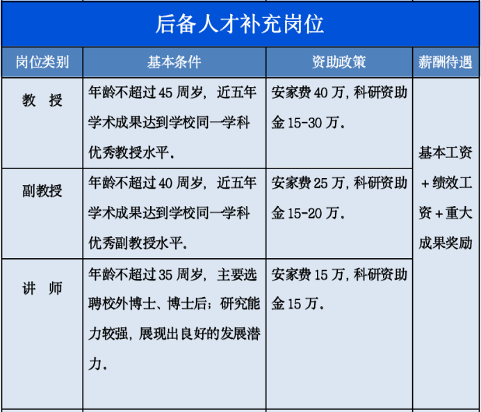 岗位设置及相关待遇按照学校人才引进政策执行,具体如下: