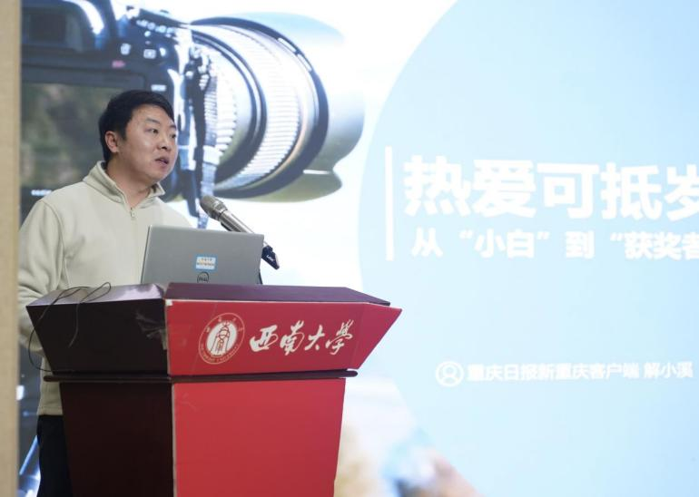 中国新闻奖一等奖获奖代表、重庆日报解小溪以三个亲历故事,讲述自己如何与新闻结缘、如何在采访中突破思维定式,以及团队协作带来的力量。